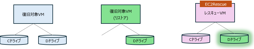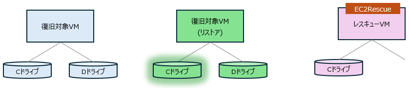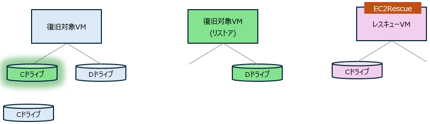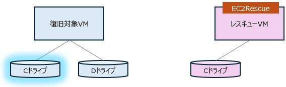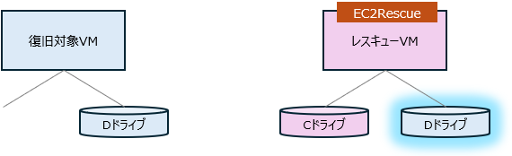 1. レスキューVM (適当なWindows Server) を用意し、EC2Rescue を配置。