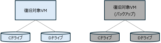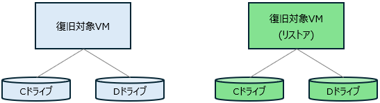 8. 復旧対象VM(リストア) を停止後、Cドライブをディタッチし、復旧対象VMにアタッチする。